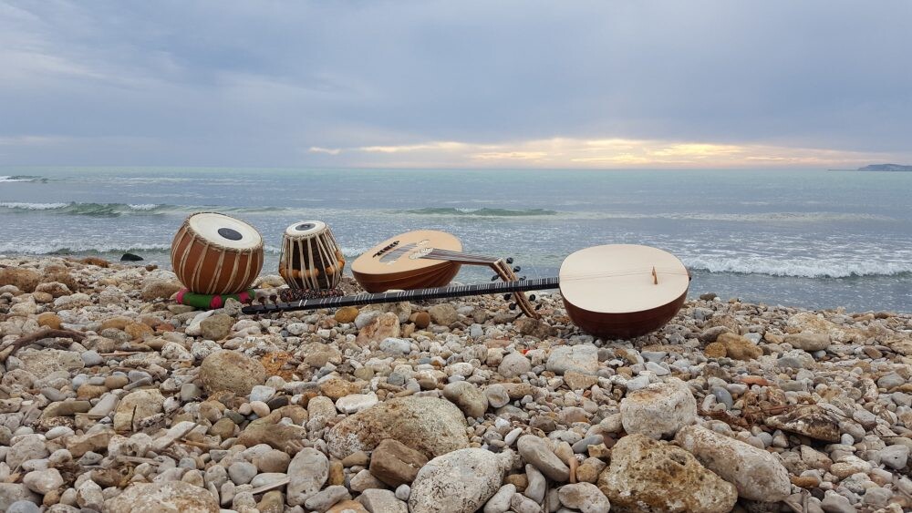 Sing no Sad Songs for Me is not composed idiomatically for the oud, or the bowed tanbur, or the tabla: rather, the music pushes all the instruments into unfamiliar places. Rehearsals with Evgenios Voulgaris, Ciro Montanari and Kostas Tsarouchis have been about stretching instrumental and musical habits into new territories. My compositional work is indebted to my studies with Ross Daly at Labyrinth, in Crete, but it also draws on my interest in large-scale musical structure, which is part of my earlier training in composition and performance in London and Budapest. Sing no Sad Songs for Me builds a dramatic structure in music, is comprises a 35-minute work in 8 interconnecting movements. The oud is not often in this context.